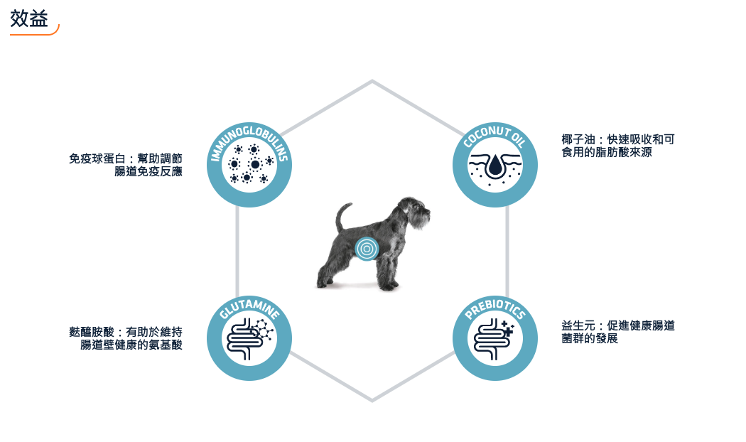 ⊹ 腸道保護 ⊹ 易消化 ⊹ 糞便管控