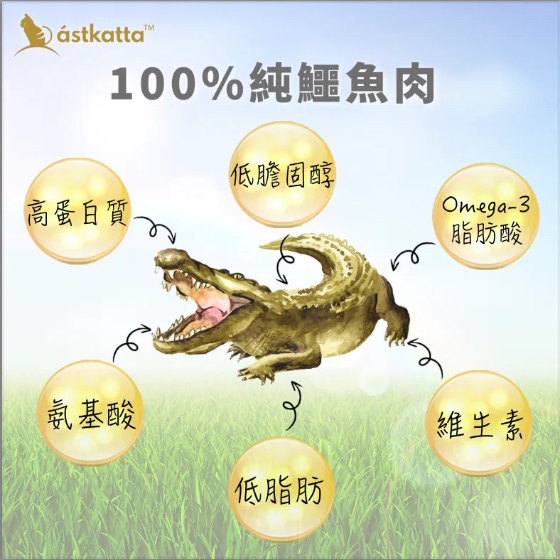 - 鱷魚肉低脂、低膽固醇、高蛋白