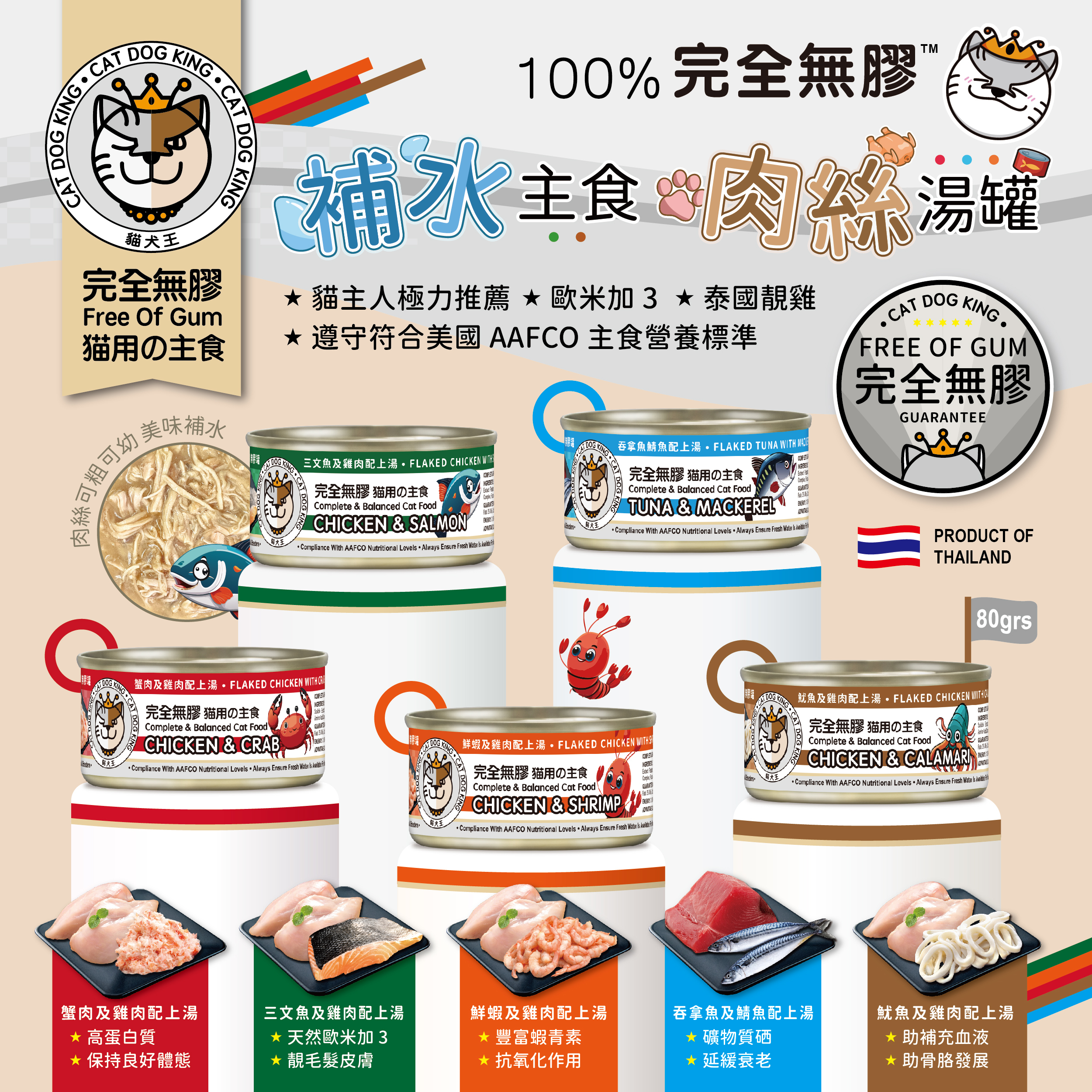 貓犬王 貓用之主食 完全無膠 補水肉絲湯罐 蟹肉及雞肉肉絲湯罐 80克