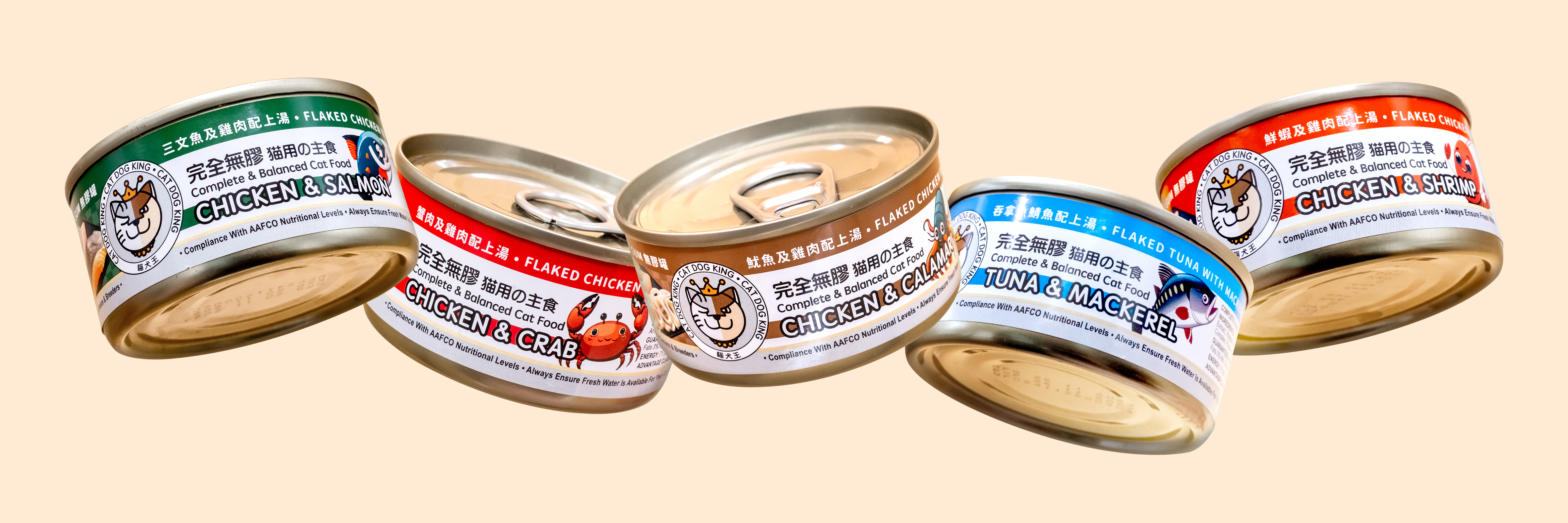 成份:雞肉、蟹肉、木薯粉、魚溶性萃取物、適味劑、維生素、礦物質、牛磺酸、鋅氨基酸複合物、低聚果糖 (FOS)、維生素 E