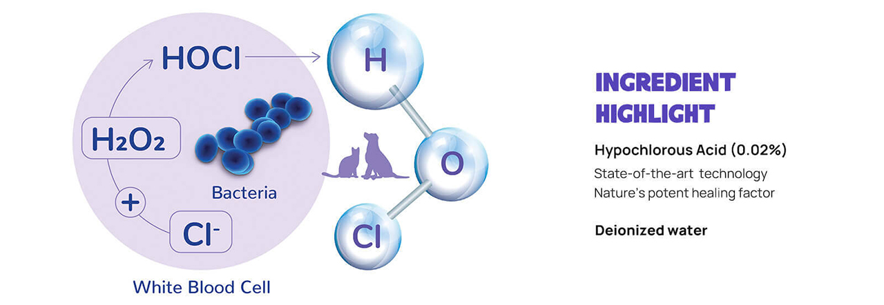 HICC PET 止痕抗菌耳水含 HOCI 為主要成份,可舒緩耳朵刺激,去除耳垢,令寵物耳朵乾淨衛生。