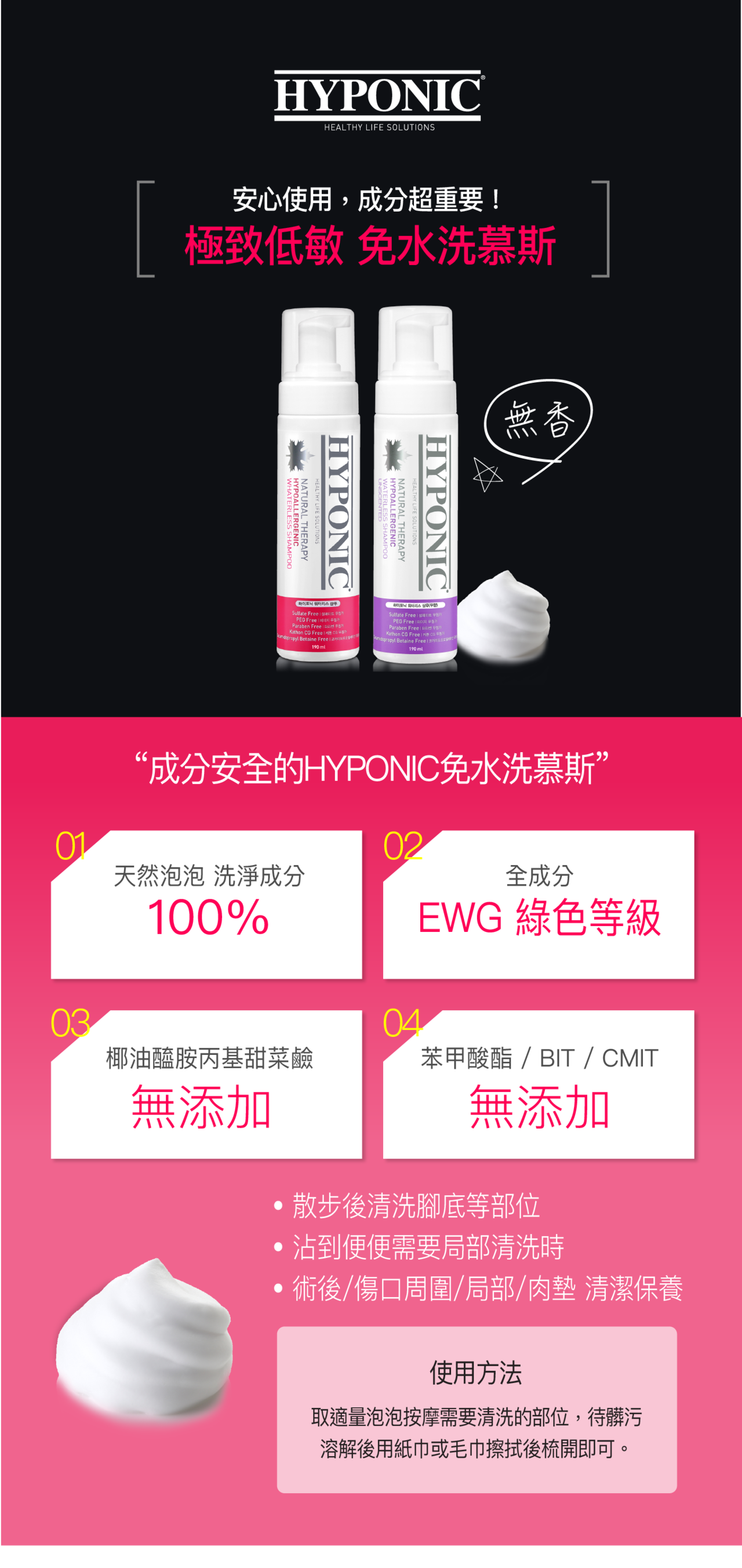 泡沫豐富,乳狀,起泡,柔軟的洗滌感,不需要護髮素