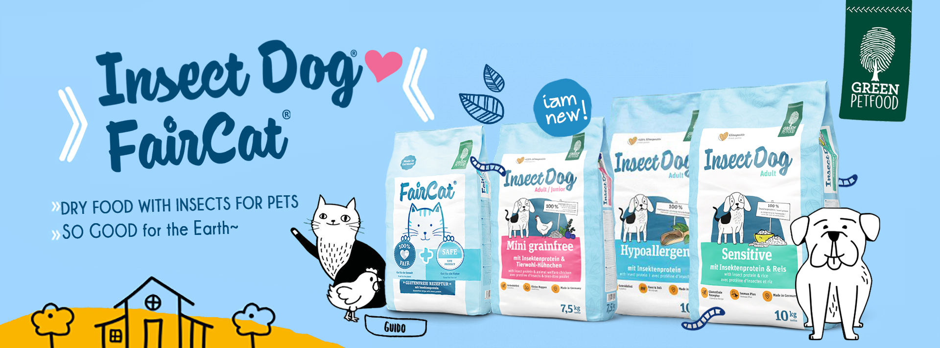 Thanks to its finely selected raw ingredients like rice and insects, as well as its gentle processing, our InsectDog Sensitive is perfect for sensitive dogs. The unique combination of vital nutrients like vitamin E, vitamin C, inulin and yeast provide optimal support for skin, coat, intestinal flora and the immune system. InsectDog Sensitive is not only suitable for sensitive pooches, but also for all four-legged pioneers: insects are THE sustainable protein source of the future!