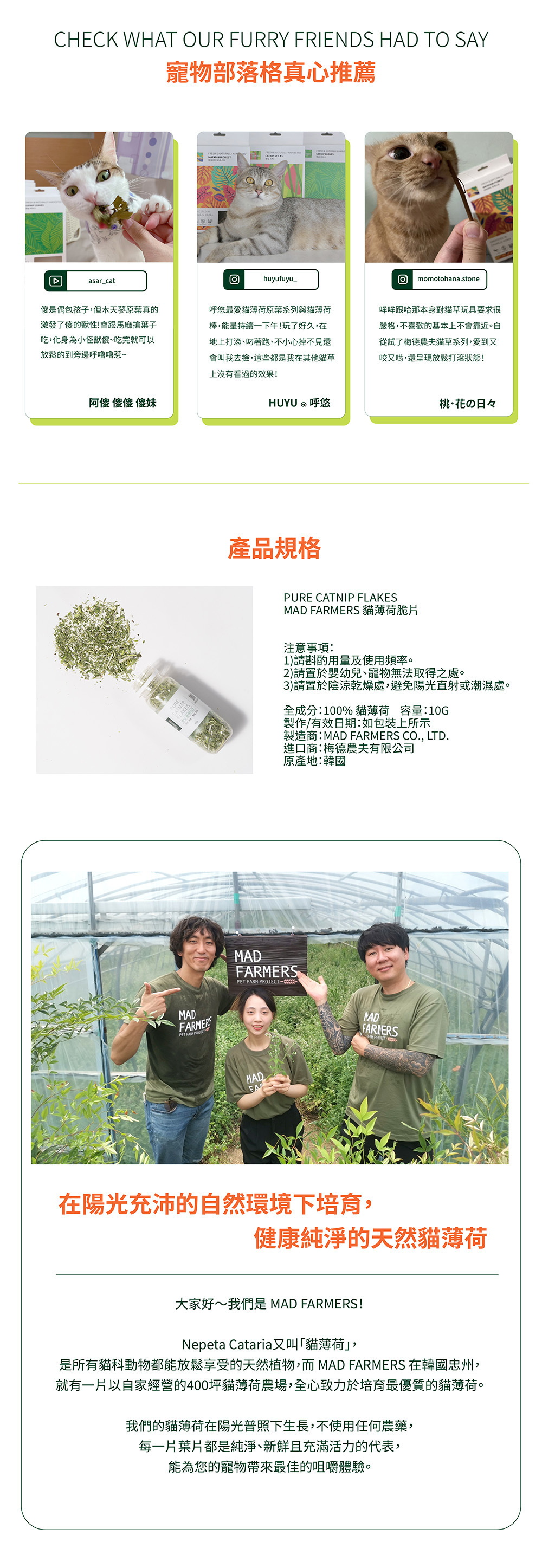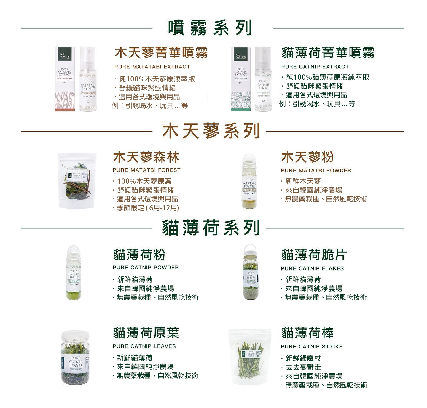 ▏使用方式:可直接提供貓主子遊玩、舔食。 新鮮的濃郁香氣能使貓咪情緒放鬆、提升食慾、吸引玩耍、增加活動力。 也可搭木天蓼產品使用唷!