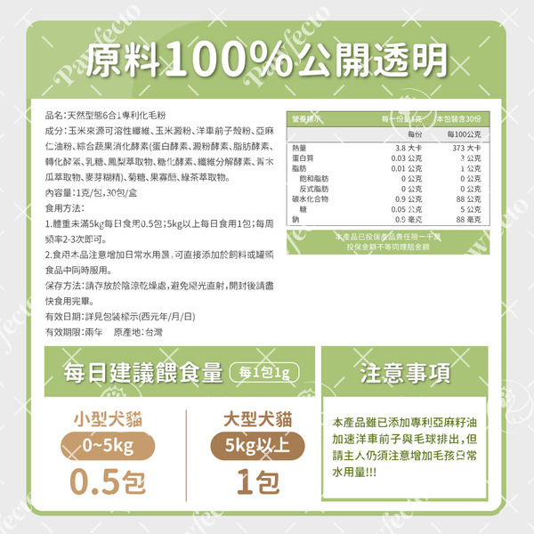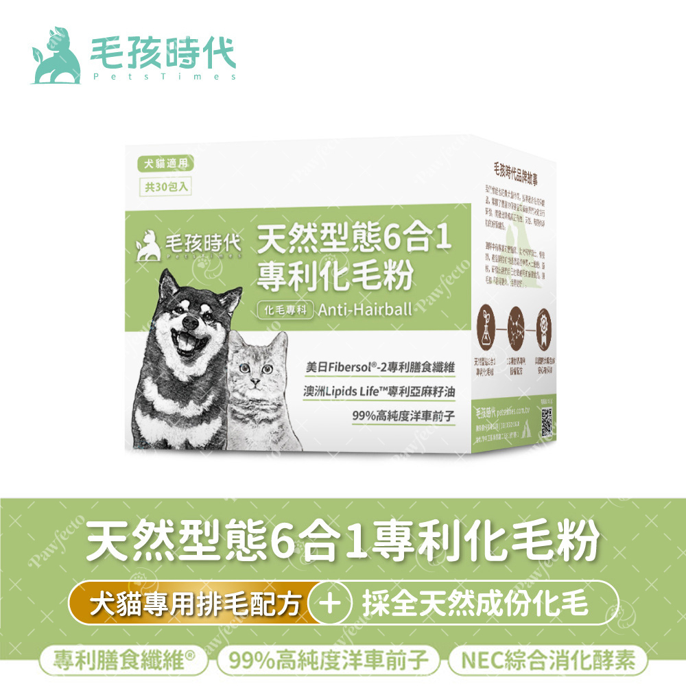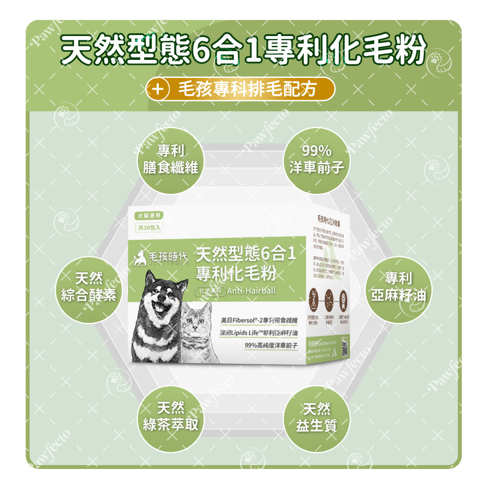 1、毛孩時代的「天然型態6合1專利化毛粉」主成分有哪些呢?