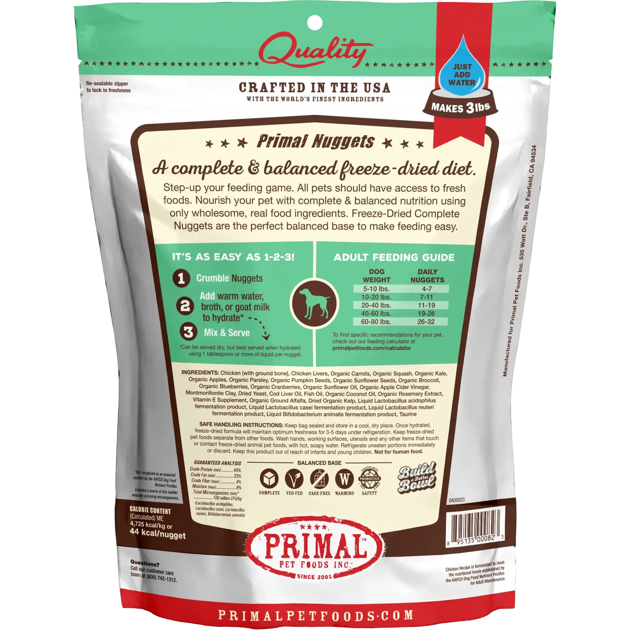 Primal 原始寵物食品完全美國本土製造,絕對不含麩質,穀物,玉米,小麥和大豆,所有材料均從被公認為優越品質,符合人類安全水平最高標準的供應商購買,沒有任何成份來自中國。