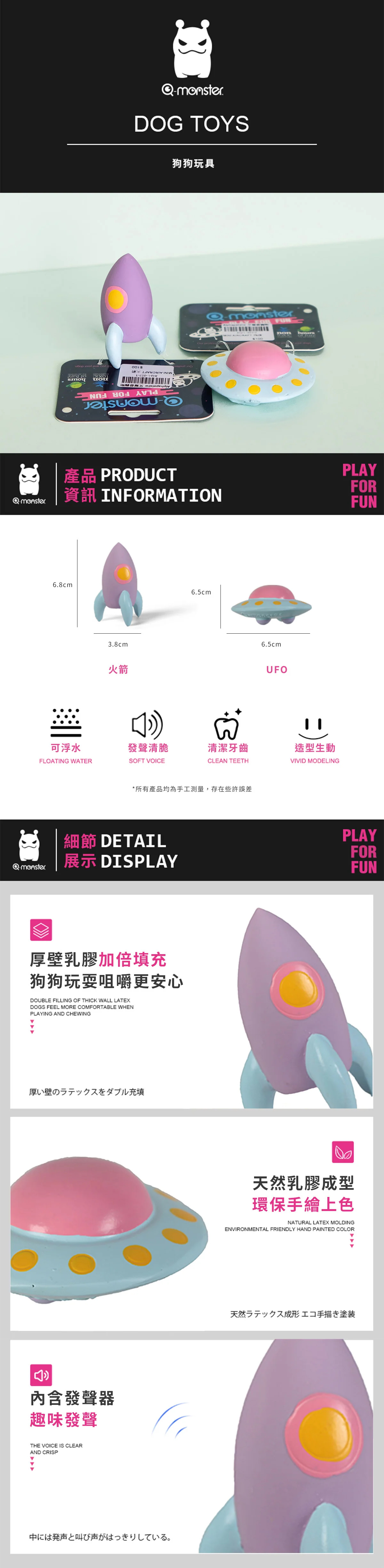 火箭和UFO的造型不僅充滿好奇心誘因,聲音刺激、清潔牙齒、可以漂浮在水中的設計,讓毛孩不管是在家還是洗澡時都玩得不亦樂乎!