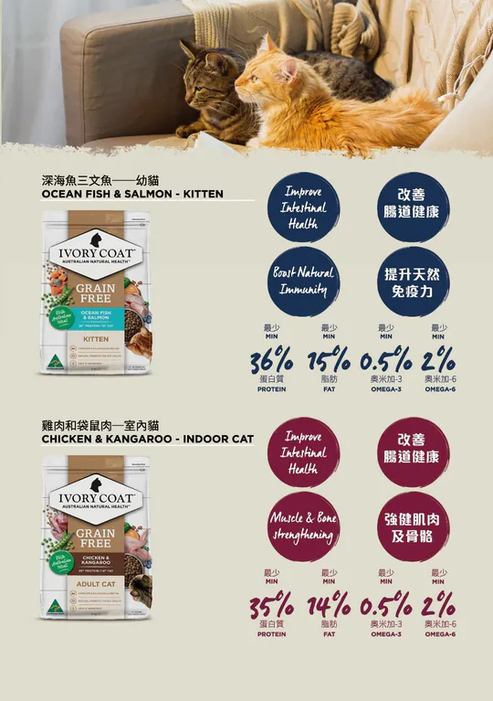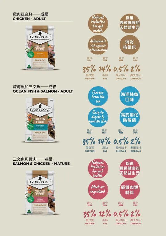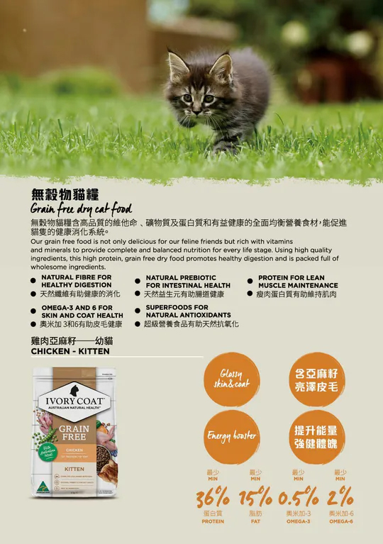 全澳洲生產無穀物天然優質糧食,提升優質蛋白來源,添加亞麻籽,天然種植蔬菜,水果及超級食物. 不含肉類副產品. 獸醫認可品牌.