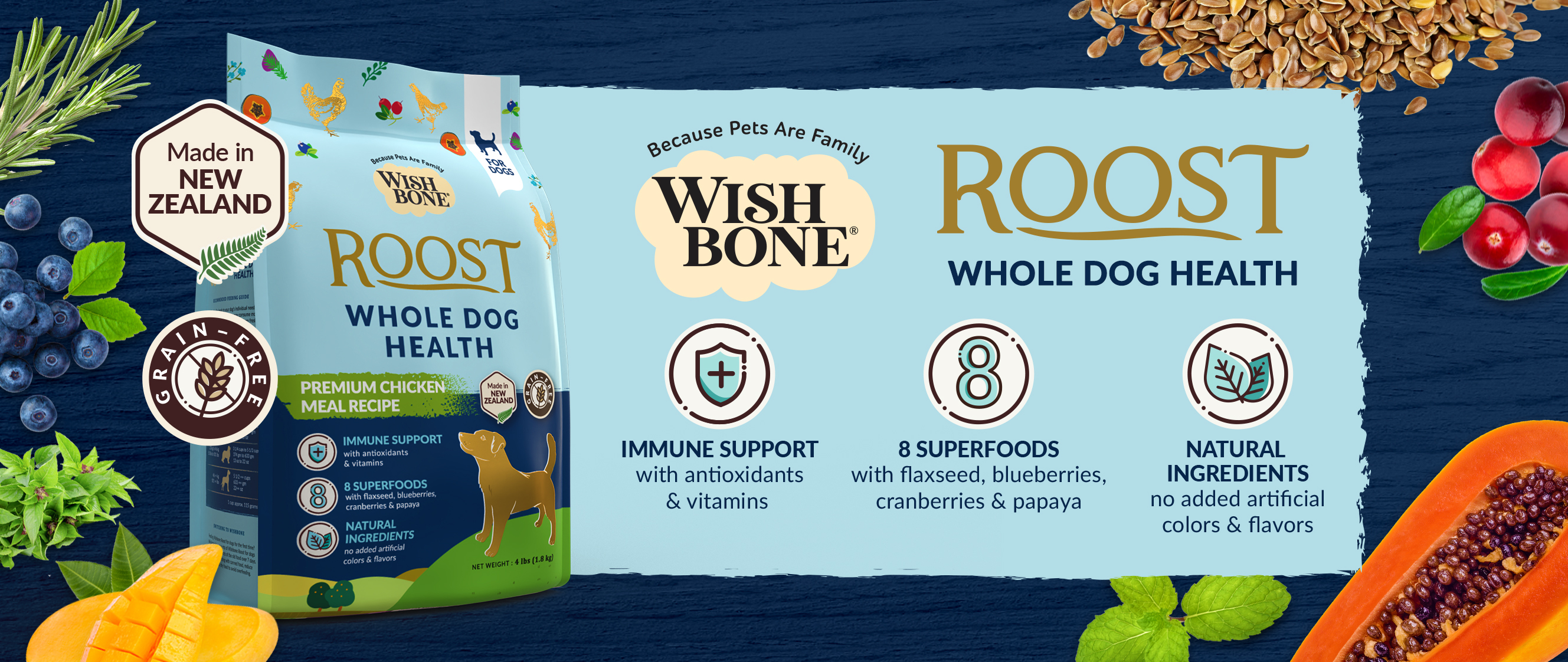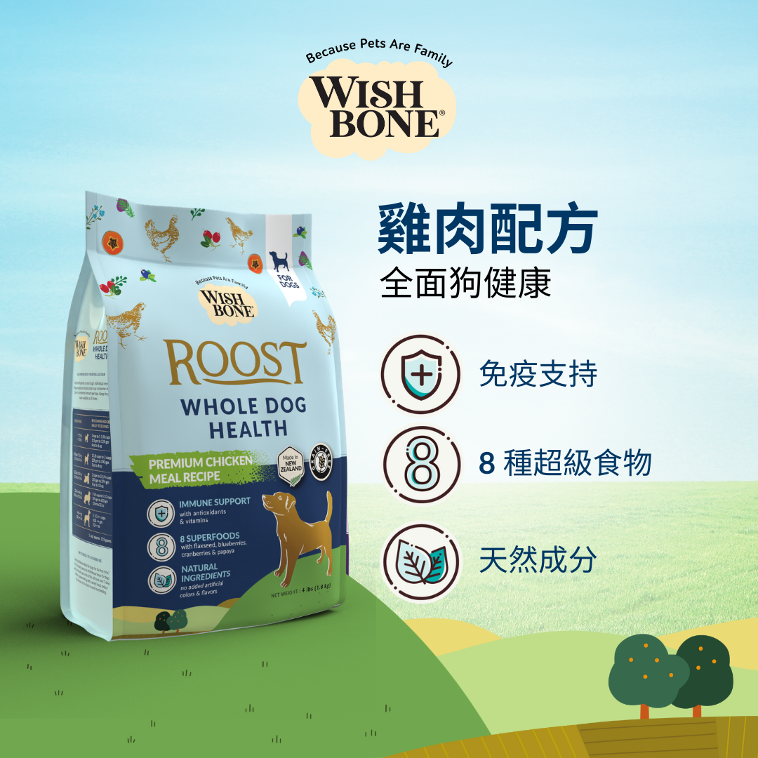 用 Wishbone Roost 為您的狗提供新西蘭鬱鬱蔥蔥的田野和農場的多汁美味。 Wishbone Roost 由紐西蘭雞肉製成,僅採用最好的當地食材精心製作,精選其精緻的風味和營養豐富的美味。每咬一口都會讓您的狗狗乞求更多!