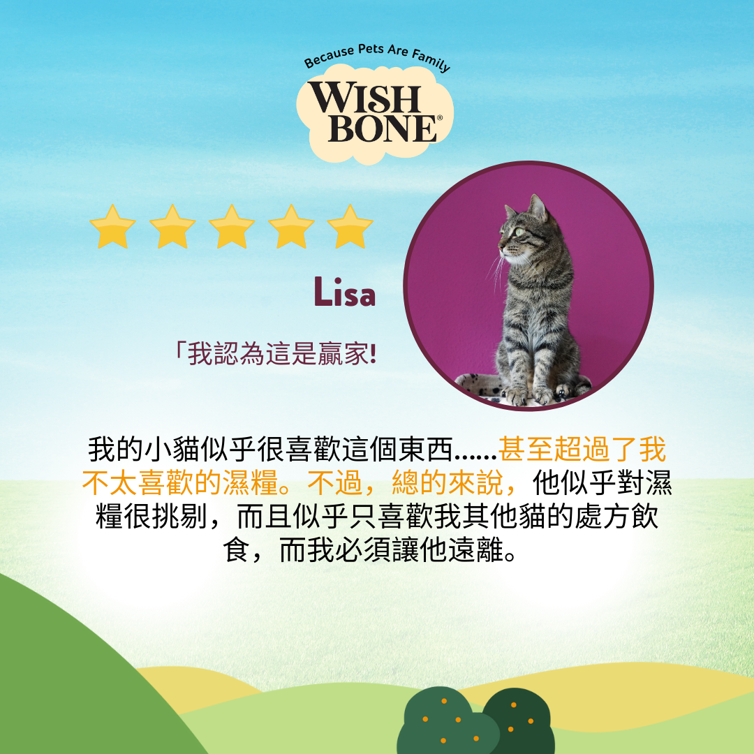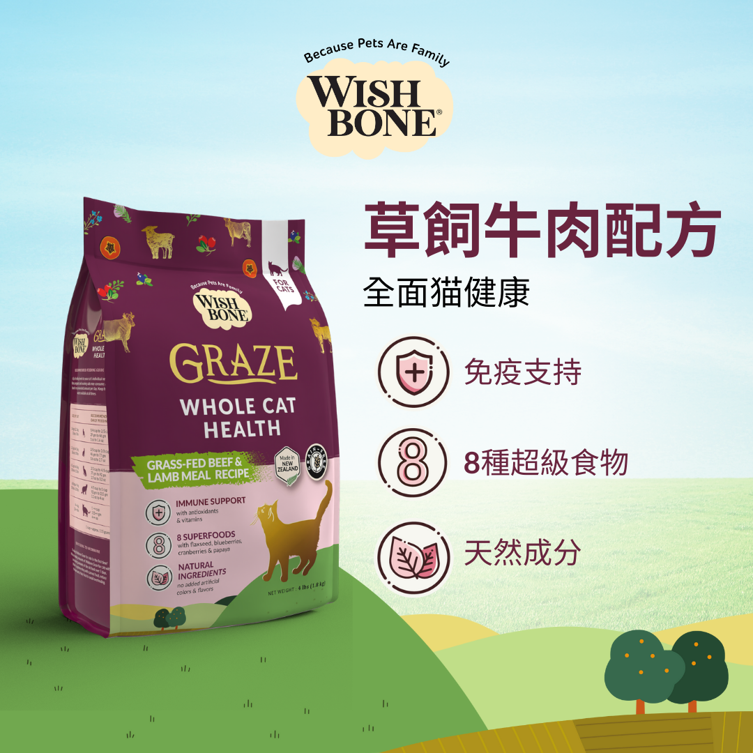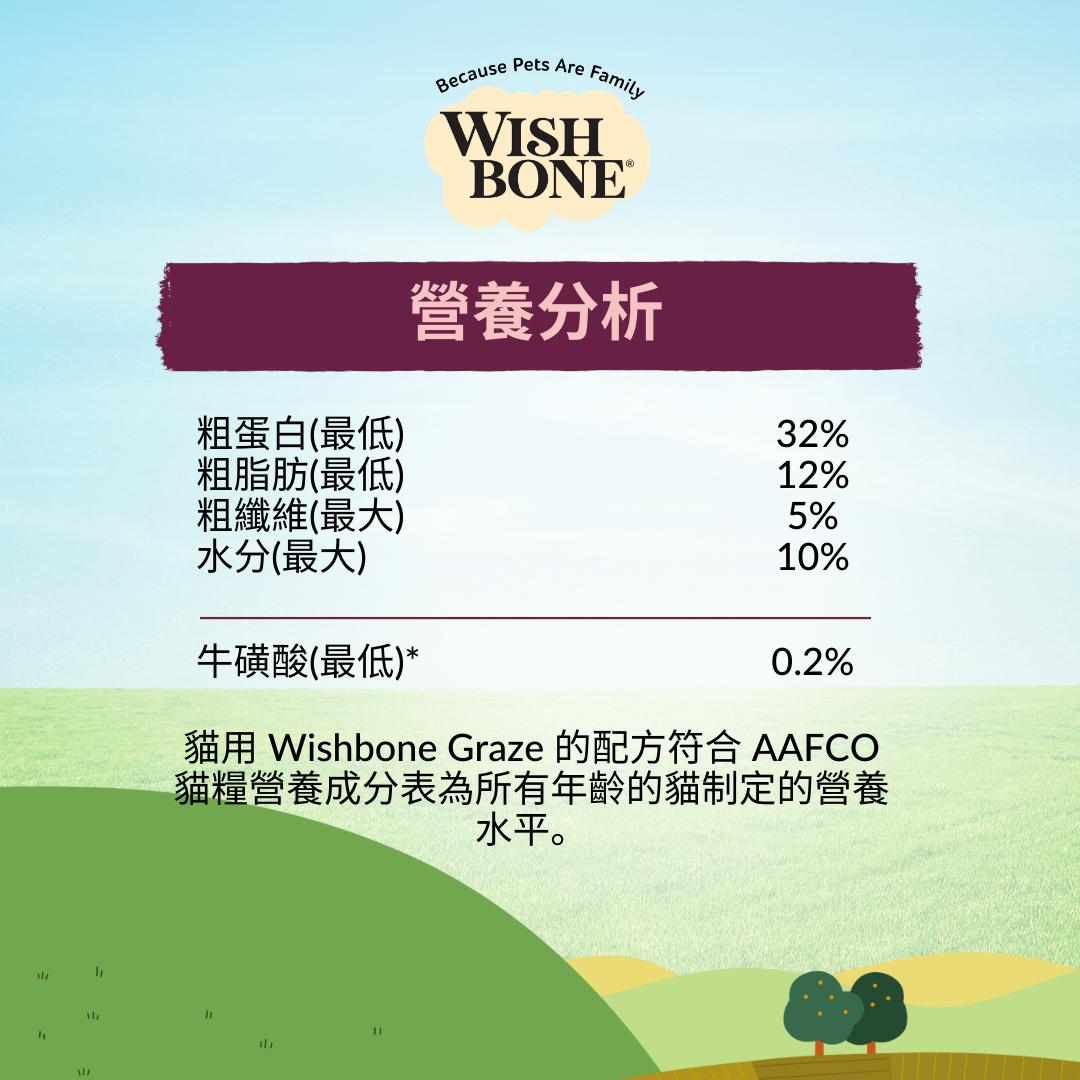 在 Wishbone,我們認識到寵物不僅僅是伴侶,它們還是家庭中珍貴的成員。他們有獨特的身份、情感和需求,值得我們給予最大的關懷和尊重。這就是為什麼我們致力於提供不僅滿足他們的營養需求,而且有助於他們整體健康的食物。我們的家族經營公司總部位於紐西蘭,致力於只採購最優質的原料。我們使用來自當地家庭農場的優質放養肉類和有機農產品。我們的每批食品都是小批量準備的,以確保始終新鮮,我們很自豪能夠提供 100% 無穀物和無麩質的產品。